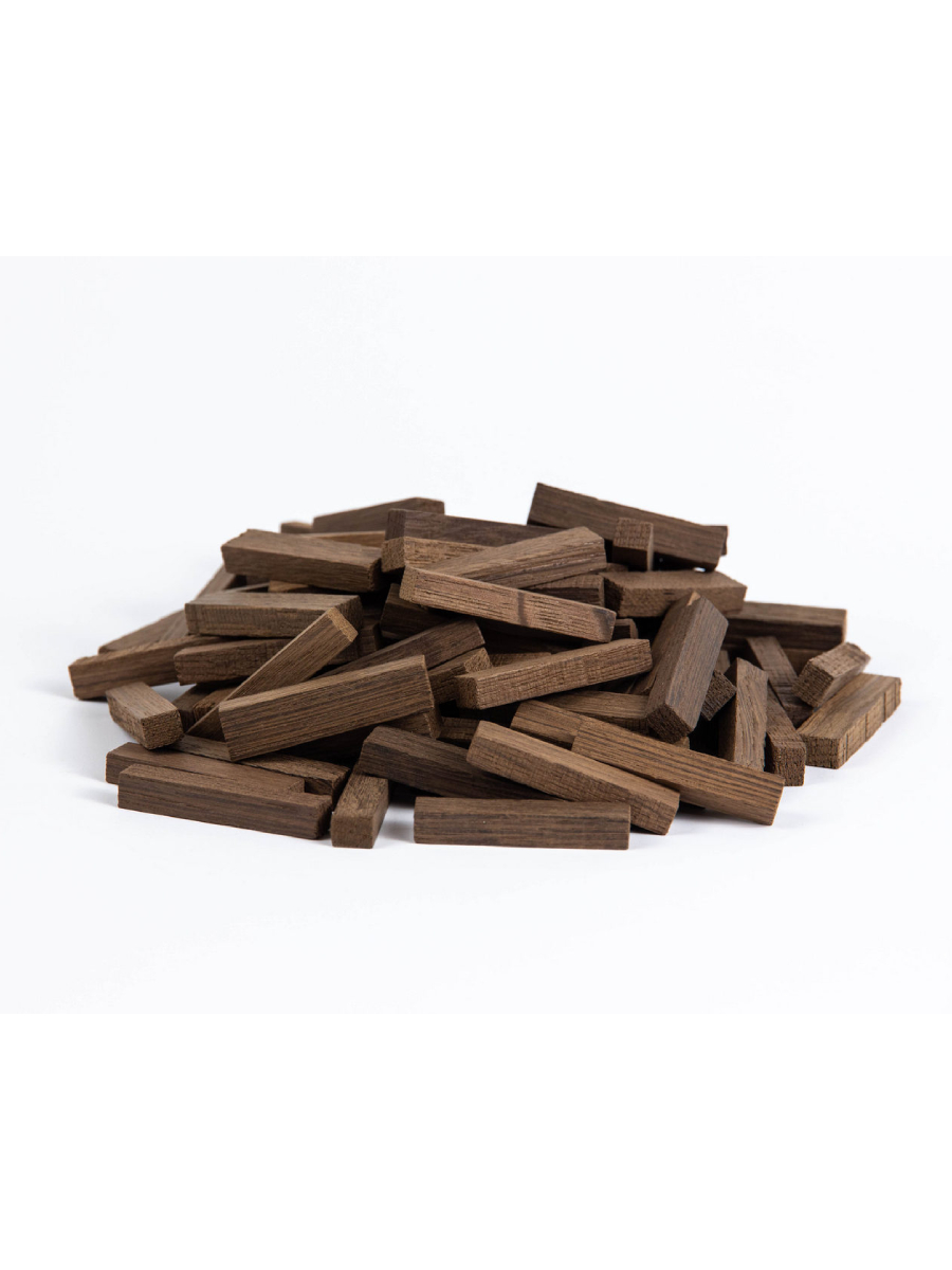 Дубовые палочки средней и сильной степени обжарки - разновидность дубовой щепы, имеющие визуально более эстетический вид, рекомендуются для интенсивного и качественного облагораживания вина и крепких алкогольных напитков, для которых важна высокая экстракция аромата.