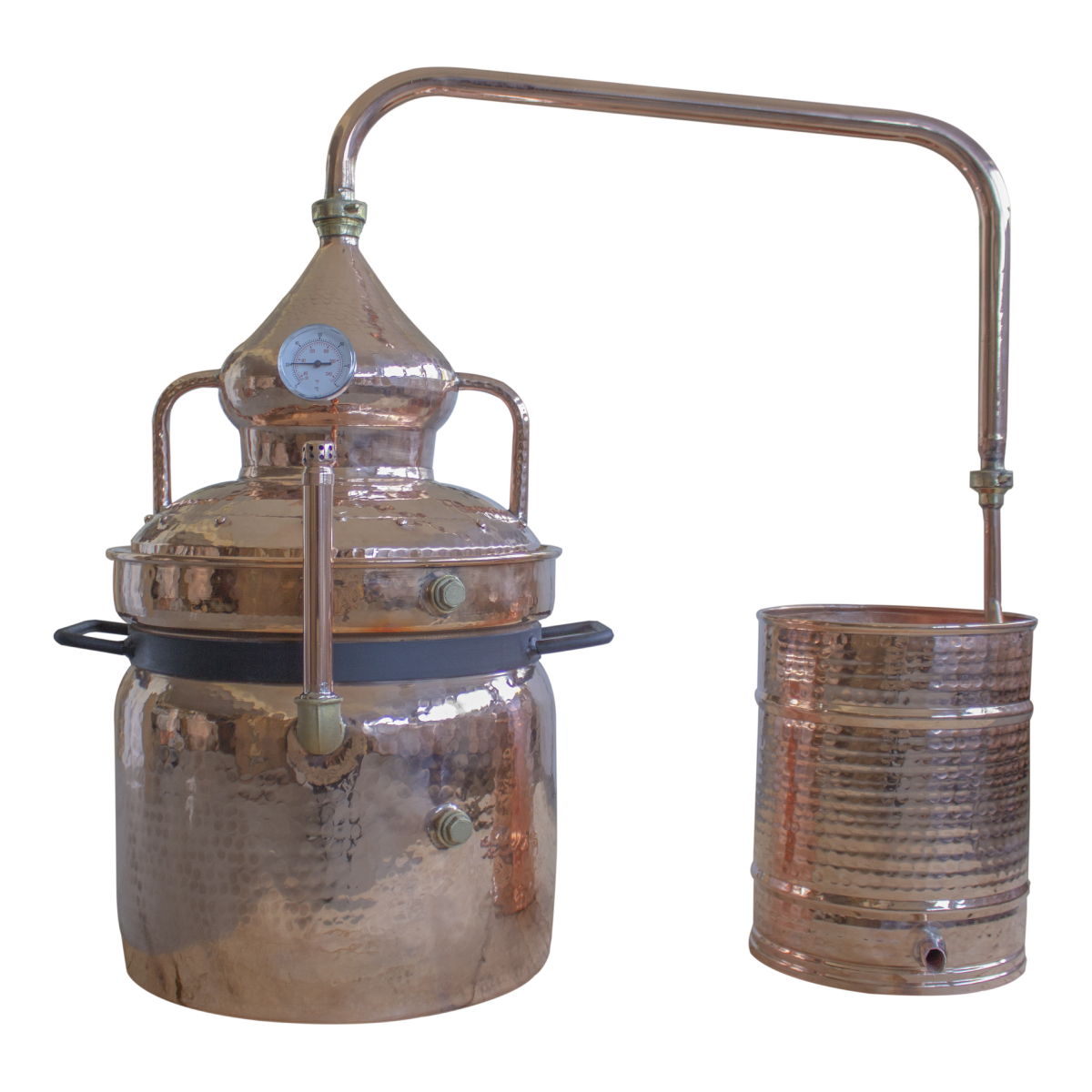 Как и любой аламбик, он идеально подходит для приготовления эксклюзивного алкоголя, например: кальвадоса, граппы, коньяка, арманьяка, текилы, чачи и т.д. Он состоит практически из чистейшей меди (на 99,7%). Все швы выполнены методом пайки с применением серебра – они коррозионно-устойчивые, прочные, поэтому изделие надежно защищено от любых деформаций. Можно быть абсолютно уверенным в безопасности эксплуатации аппарата, ведь используемые материалы не вступают в реакцию с напитком, максимально сохраняя все его вкусо-ароматические качества.