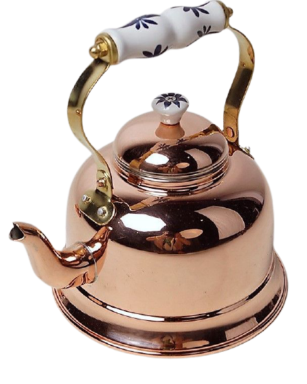 Вместимость 1,5л позволит легко приготовить чай для всей семьи или гостей. Так что, планируя чаепитие, не забудьте про этот чудесный чайник! Чайник с внутренней поверхностью, луженой оловом. Это обеспечивает безопасность и удерживает медь в идеальном состоянии на протяжении многих лет. И ручка из латуни и фарфора – это не только стильно, но и удобно! Ты всегда сможешь легко и комфортно налить горячий напиток. Внутри он покрыт оловом, что дает ему дополнительную прочность и долговечность. Так что, приобретая медный чайник, вы получите не только функциональный и стильный предмет для своей кухни, но и положительный вклад в традиции, историю и здоровье. Закажи медный чайник и погрузись в мир уникальных вкусов и элегантной красоты!