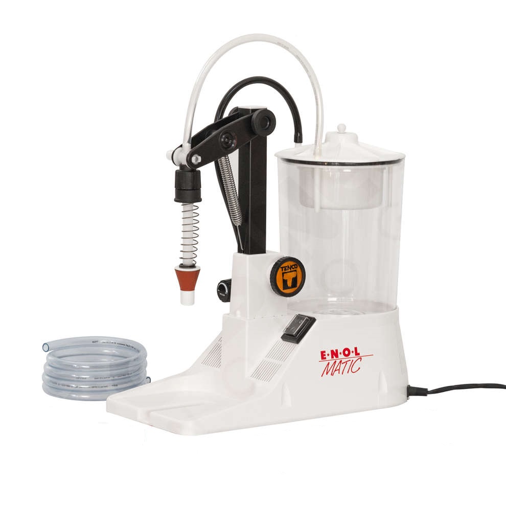 Разливочная машина с профессиональными возможностями. Наполняет бутылки вакуумным методом, используя метод пеноотделения. Имеет возможность регулировки скорости наполнения, а также объема наливаемого вина в каждую бутылку. Разливает напитки в стеклянные и пластиковые бутылки с диаметром горлышка от 16 до 28 мм и высотой наполнения емкости от 250 до 330 мм. Идеально подходит как для домашнего использования, так и для производственных нужд. Незаменимый помощник для любителей домашнего виноделия, пивоварения и самогоноварения. Прибор оснащен простым в использовании пультом управления, который позволяет легко настроить регулирование скорости розлива и уровня наполнения. Энолматик гарантирует сохранение вкусовых и ароматических характеристик.