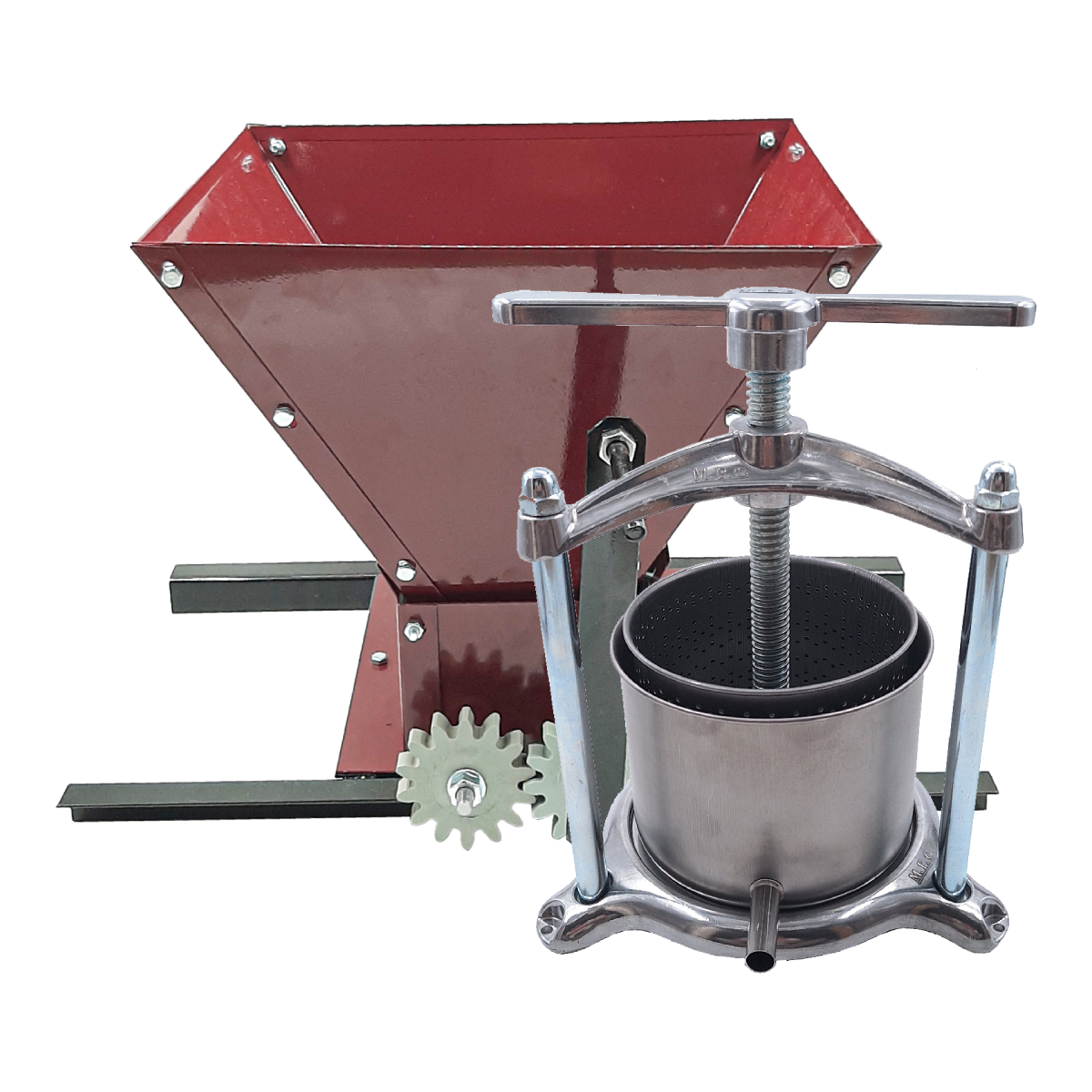 Дробилка для винограда ВД-5 "Русич", механическая предназначена для бытовой переработки ягод, в т.ч и винограда. Cостоит из загрузочного бункера, двух параллельно расположенных дробильных валиков с ручным приводом .Это смонтировано на рамке. Сырье сверху подается через бункер на дробильные валики. В результате вращения получается сок.