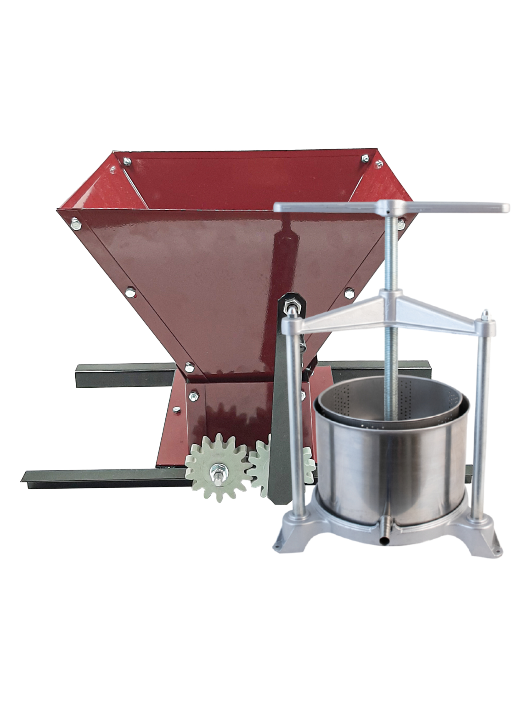 Дробилка для винограда ВД-5 "Русич", механическая предназначена для бытовой переработки ягод, в т.ч и винограда. Cостоит из загрузочного бункера, двух параллельно расположенных дробильных валиков с ручным приводом .Это смонтировано на рамке. Сырье сверху подается через бункер на дробильные валики. В результате вращения получается сок.