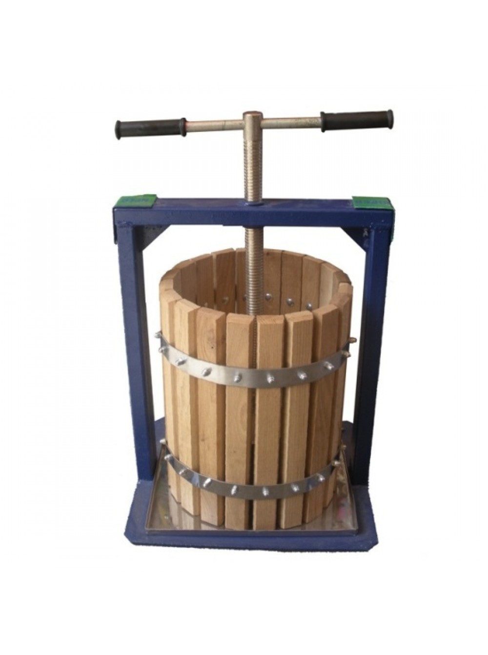 Пресс Вилен из дуба на 25 литров подходит для отжима фруктов и ягод. Деревянные дощечки прочно скреплены нержавеющими кольцами, а сам материал не влияет на качество и вкус сырья.