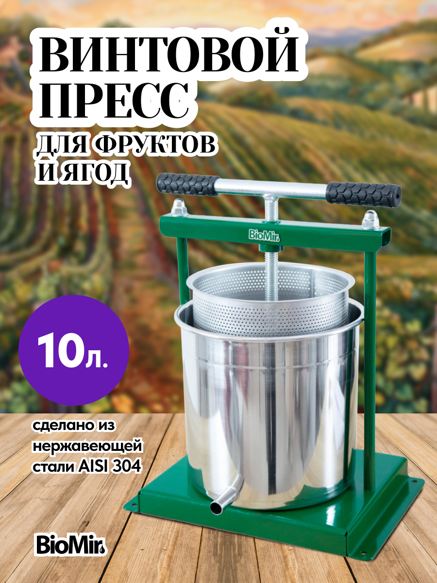 Пресс для вина BIOMIR Зеленый 10 л. винтовой с кожухом купить в интернет магазине БиоМир