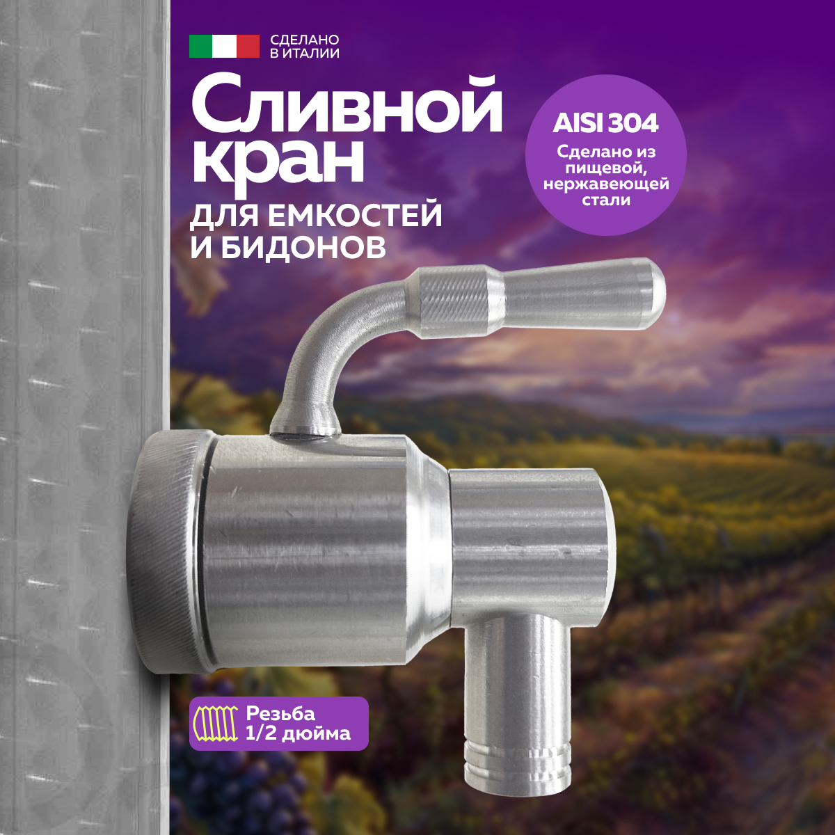 Кран из нержавеющей стали 1/2 дюйма TRE.I, в интернет-магазине товаров для домашнего виноделия БиоМир