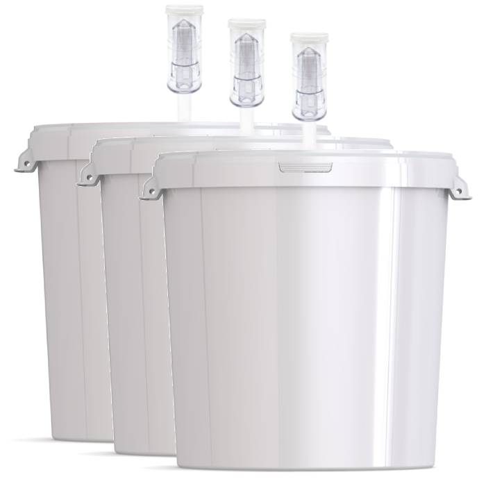 Бак для брожения с гидрозатвором объемом 32 литров изготовлен из пищевого пластика и предназначен для изготовления в домашних условиях вина, пива, самогона и других напитков, нуждающихся при изготовлении в брожении. Химически нейтральный материал не взаимодействует с содержимым, никак не влияет на процесс брожения и органолептические свойства продукта. По бокам емкости предусмотрены удобные ручки для переноски. Емкость для брожения на 32 литров имеет очень плотно защелкивающуюся крышку, не требующую использования прокладки и не позволяющей воздуху проникать как в емкость, так и из нее. Гидрозатвор для брожения устанавливается в крышку емкости через резиновое уплотнительное кольцо, также обеспечивающее герметичность емкости. Внутренние поверхности бака легко поддерживать в чистоте, пластик не способствует развитию опасных для сусла грибков, способных испортить напиток, не впитывает запахи. Для ухода за емкостью рекомендуется использование жидких моющих средств и гелей, не содержащих абразив.