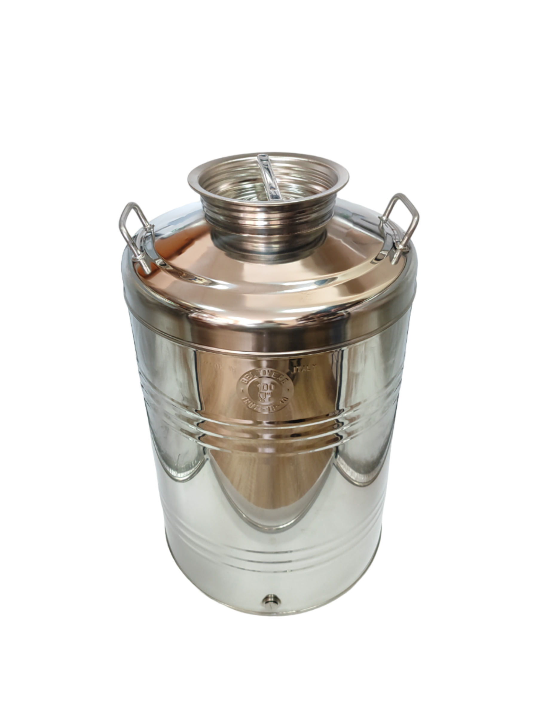 Бидон 100 литров предназначен для длительного хранения пищевых и непищевых продуктов, в том числе алкогольных напитков (самогон, водка, спирт пищевой, настойка, бренди, коньяк, виски, кальвадос, чача), воды, гидролатов, масла и соков. Может использоваться в качестве перегонного куба для получения самогона или в качестве емкости для брожения.