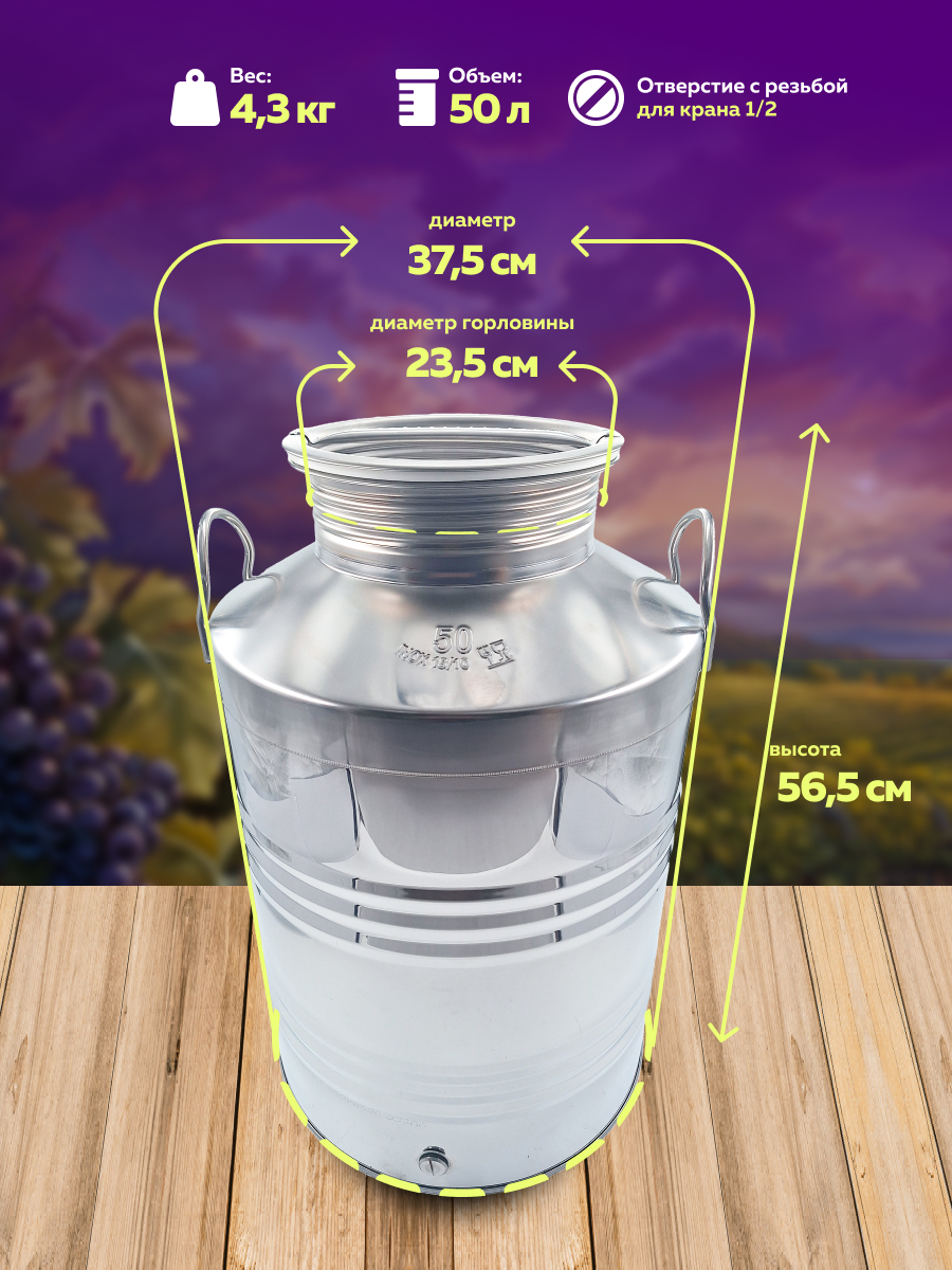 Бидон из нержавейки 50 л. емкость для брожения и хранения