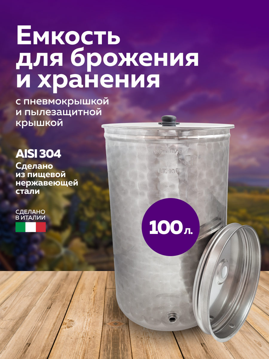 Бочка из нержавейки 100 л. емкость для брожения с пневмокрышкой и пылезащитной крышкой, в интернет-магазине товаров для домашнего виноделия БиоМир