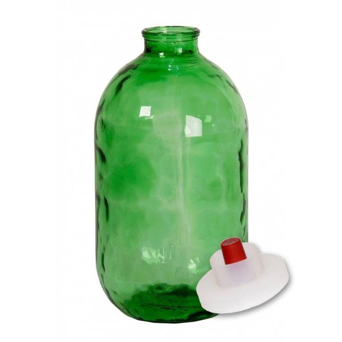 Банка для вина "БК-82-10000", 10 л, зеленая, и крышка с гидрозатвором "СКО82", в интернет-магазине товаров для домашнего виноделия БиоМир