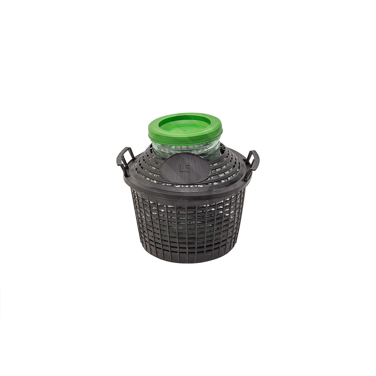 Бутыль в пластиковой корзине 5 литров с широким горлом используется для хранения или транспортировки вина, самогона и других напитков. Стеклянная бутыль защищена пластиковой корзиной, имеющей ручки для переноски. Кроме того, пластиковая корзина способна защитить бутыль не только от повреждений, но и от ультрафиолета. Бутыль изготовлена из качественного, экологичного стекла. Комплектуется пластиковой крышкой.