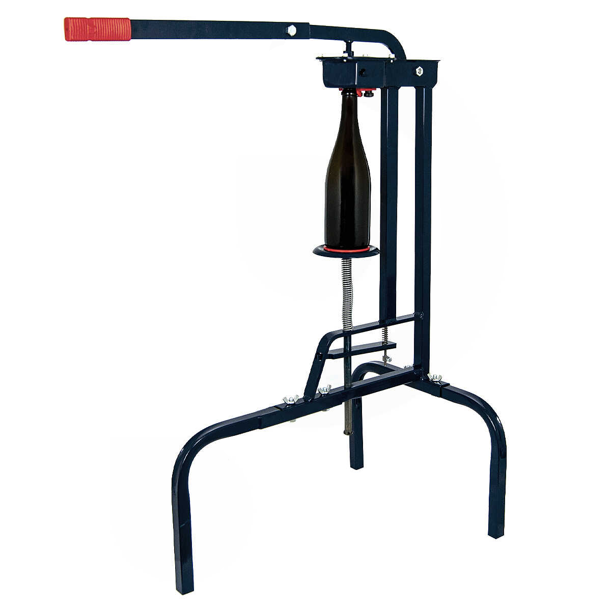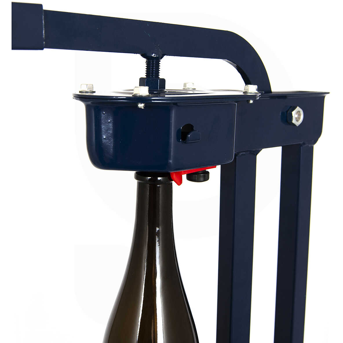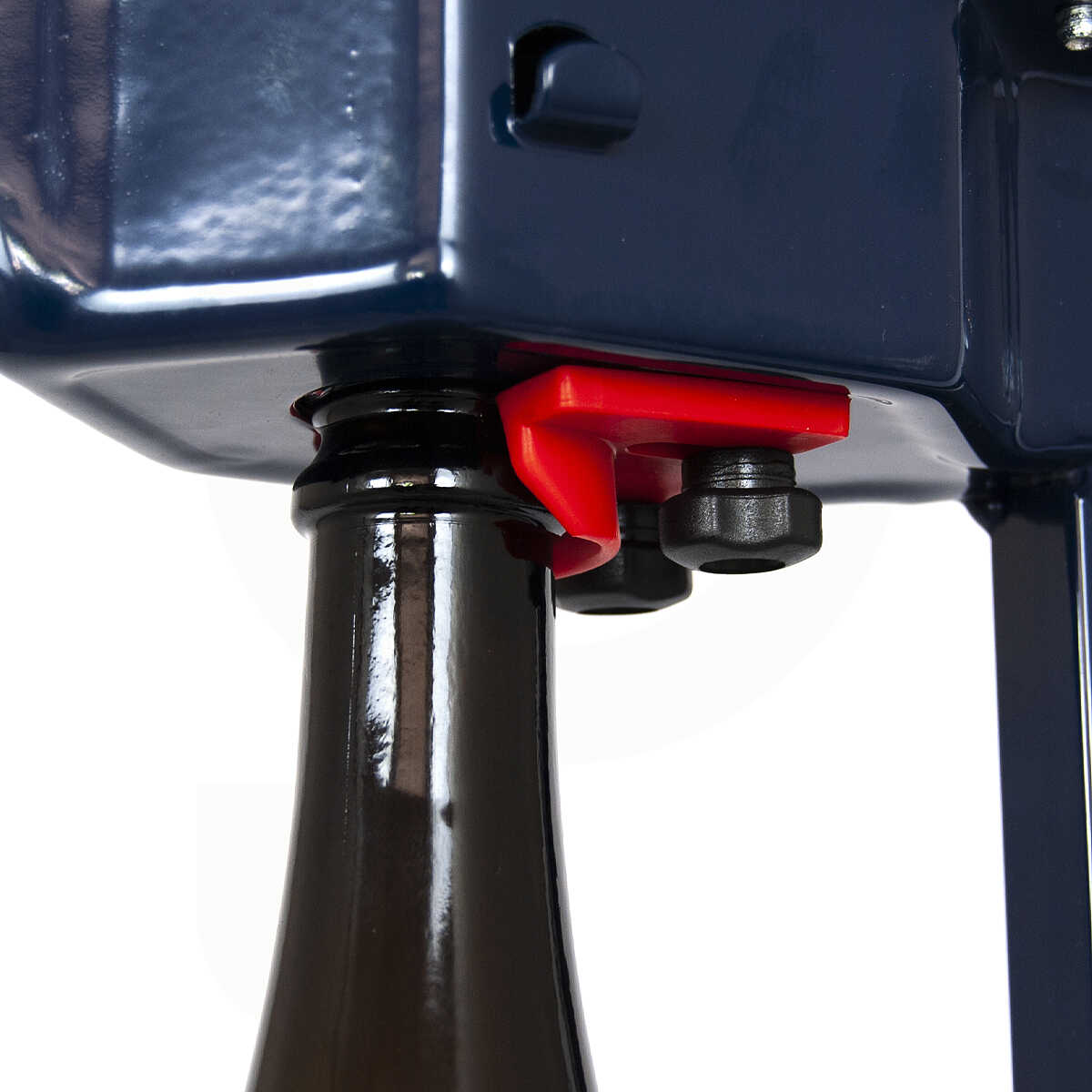 Чтобы сделать процесс укупорки простым и удобным, укупорочная машина оснащена рычагом. Поднятием верхнего рычага закрытая пробка устанавливается в соответствующее гнездо машины. При этом центрирующий конус уравнивает размер горлышка бутылки, которая предварительно помещается на опорную пластину. Одна из особенностей данной модели – наличие специальной шайбы, позволяющей установить ту часть грибовидной крышки, которую вы хотите оставить снаружи. После установки плотно закрывается рычагом, вставляя пробку и закрывая бутылку быстро и безопасно.